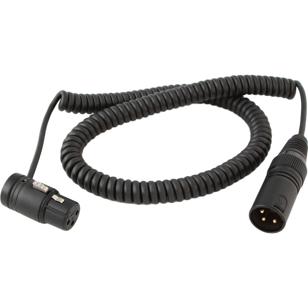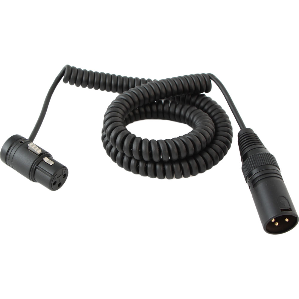 The custom-made Cable Techniques Coiled Boompole-to-Mixer Cable with Low-Profile XLR-3F Connector (18" to 6') provides location sound mixers with a tidy and lightweight solution for connecting cabled boompoles to field mixers and recorders. The cable is equipped with a low-profile XLR female connector on one end and a straight XLR male connector on the other, and extends from 18" to 6'. The XLR female connects to the boompole side exit and is user-adjustable to allow for customized orientation.