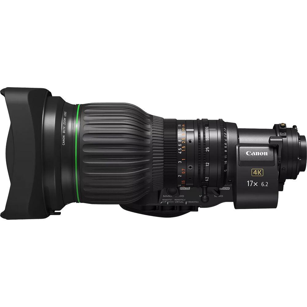 The 2/3" UHD 17x Zoom Full-Servo Lens with 2x Extender from Canon is designed for current HDTV production with an eye towards future 4K upgrades. This lens enhances optical performance for HDTV and UHD, providing a degree of futureproofing. It boasts a wide-angle focal length of 6.2mm and a powerful 17x zoom, giving broadcasters various shooting options. It combines enhanced operability and durability with UHD 4K optical performance in a lightweight, compact body that weighs only 4.7 lb.