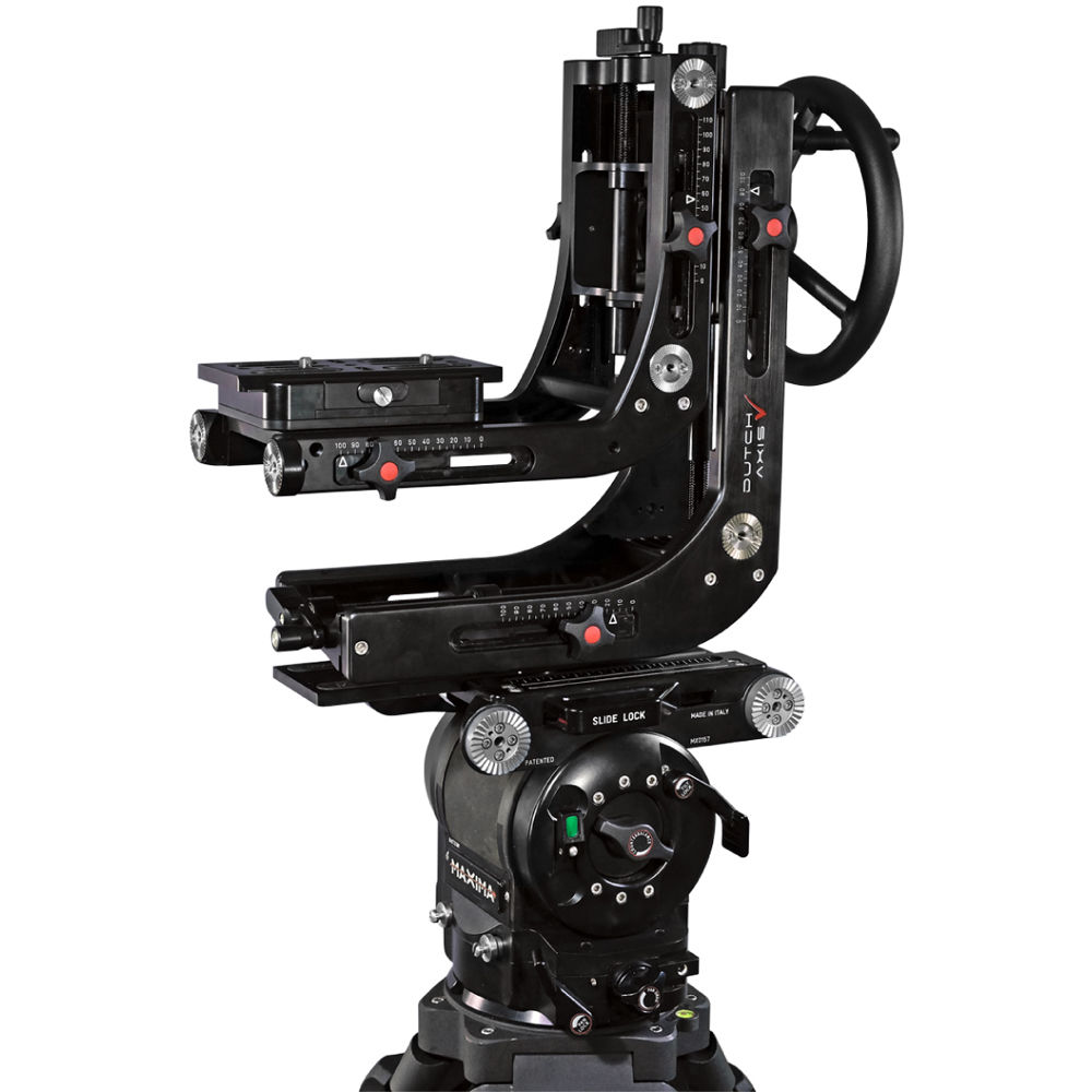 With the Cartoni Total Dutch you can add roll-axis movement to a standard cinema-grade fluid head like an OConnor 2575. Simply operate the steering wheel in conjunction with the fluid head's pan handle to achieve complex camera moves. The Total Dutch installs to the fluid head using two 3/8"-16 threads. Two counterweights are included to precisely balance your camera load for true nodal movement.