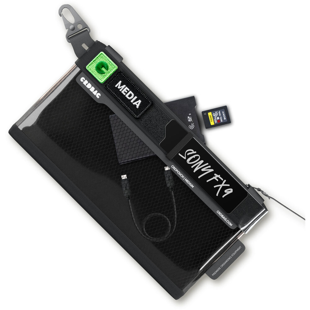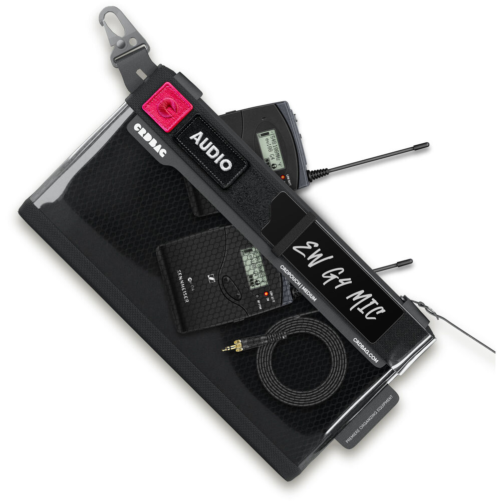 The front features a see-through mesh, and on the top there's a hook-and-loop strip that can accommodate separately available CRDBAG label patches. There is also Molle webbing on the back and there's a small pocket for an Apple AirTag to keep your gear safe. A tactical hook allows you to clip the pouch to a larger bag or other equipment.