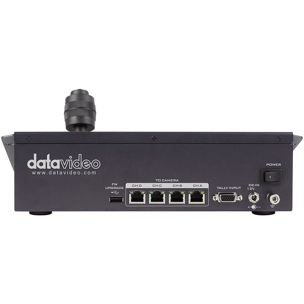 An ergonomic joystick and tactile button layout make for easy setup and control of up to four Datavideo PTZ cameras and robotic pan/tilt heads for any live production scenario.