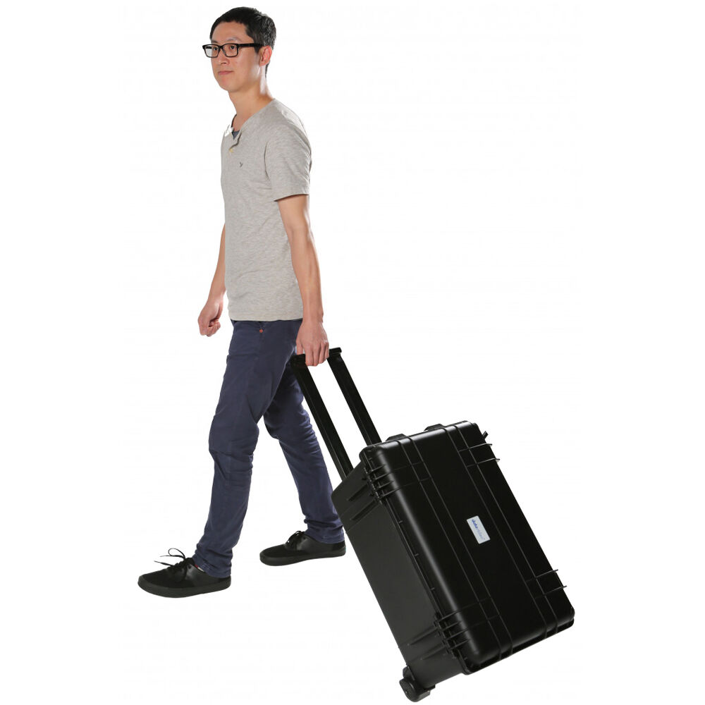 The XXL Wheeled Trolley-Style Water-Resistant Case for 3 PTZ Cameras from Datavideo features a pre-cut foam that holds three PTC-140 or PTC 150 cameras and cables. This allows you to safely nestle your cameras, cables, and accessories into the case. The case is a trunk-shaped, hard-shell case that is water-, dust-, and crush-resistant. Integrated padlock inserts and rubber seals provide additional security. You can wheel the case along using the retractable handle or grasp it using the large, hinged top handle.