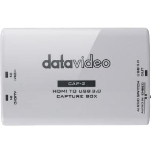 The Datavideo HDMI to USB 3.0 Capture Box allows you to capture uncompressed video with audio from your camera or deck's HDMI output on your computer for recording, editing, videoconferencing, and streaming applications. No driver installation is necessary (except with Windows 7). It features an HDMI input and loop-through output, and a USB 3.0 output. Compact in size and powered directly from a USB 3.0 port, the converter is a practical and easy-to-use USB 3.0 capture solution.