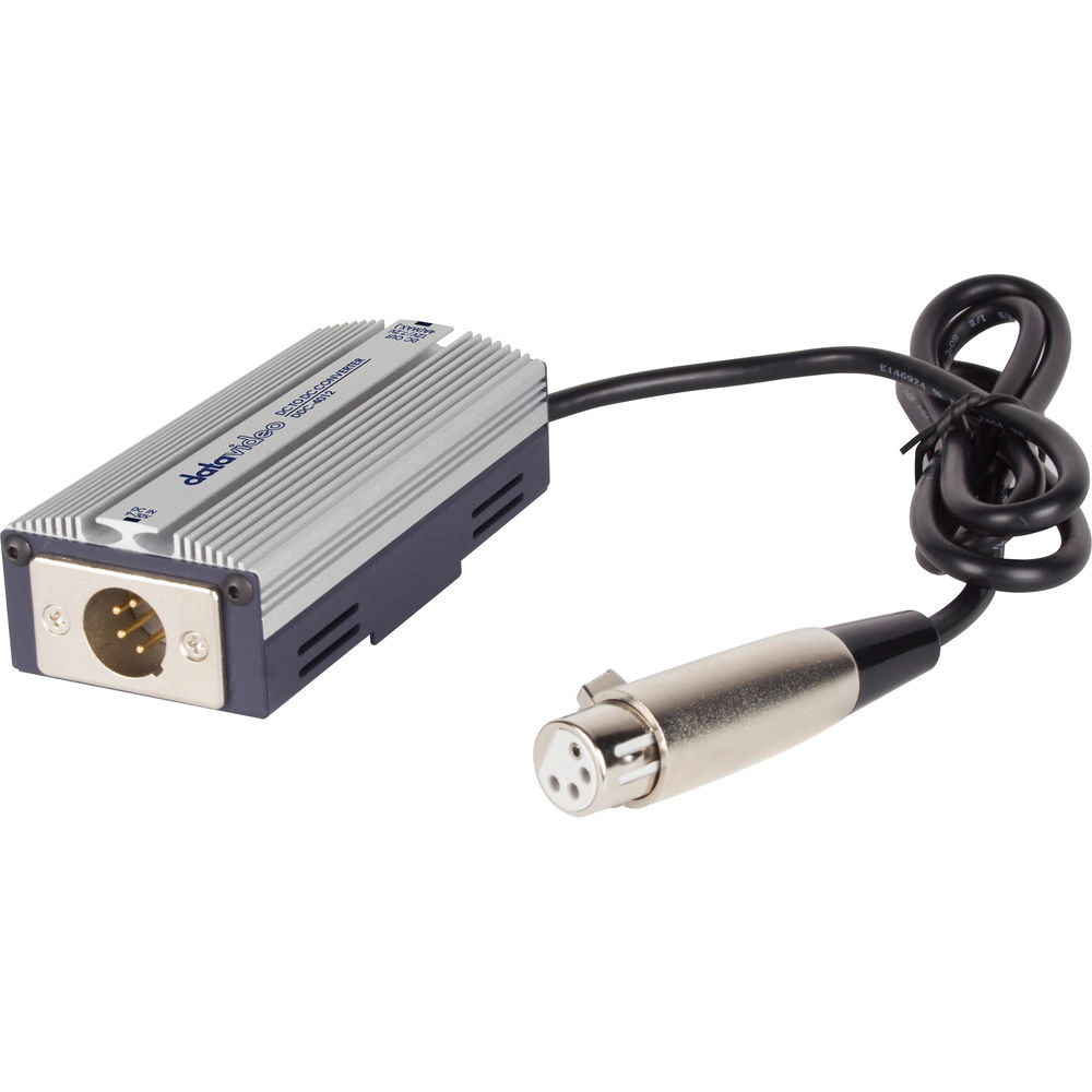 The Datavideo In-Line XLR DC to DC 9-12V Converter converts unregulated 15-50 volts DC from a 4-pin XLR source to regulated 7.2 or 12 volts DC over 5.5mm PSU or 4-pin XLR output.