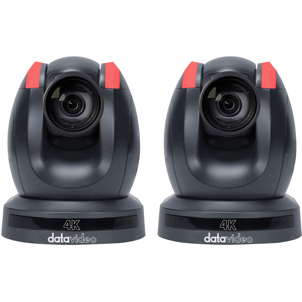 Add a compact PTZ camera streaming solution to your classroom, house of worship, or corporate conference room with this Mobile PTZ Kit with 2 x PTC-280 Cameras and HC-800FS Carry Case from Datavideo. Two black PTC-280 4K PTZ cameras and a hard-shell case are included with the kit.