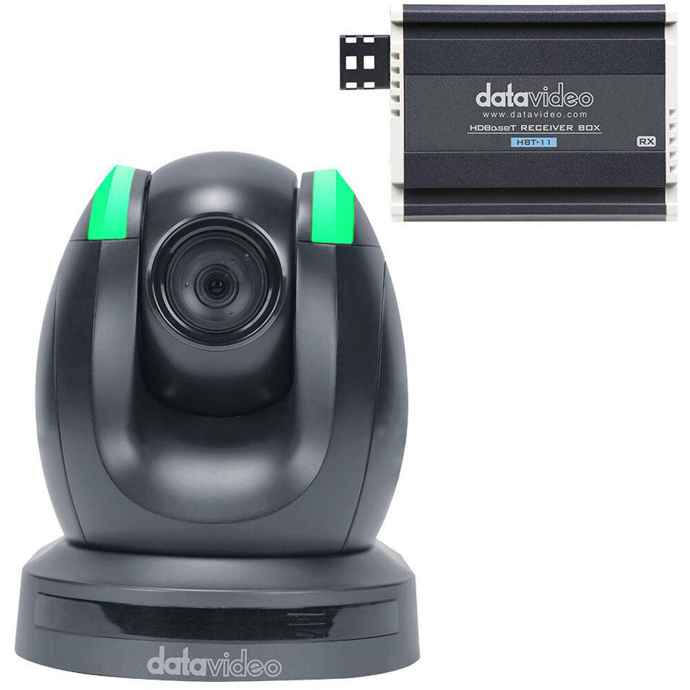 Mounting your PTC-150TL camera in challenging locations, where there may not be any nearby power outlets, is made possible with the black PTC-150TL PTZ Camera with HBT-11 HDBaseT Receiver from Datavideo. By employing HDBaseT technology, you greatly reduce setup time and enhance placement flexibility, as this enables you to run a single category cable to your camera, providing you with reliable connectivity for video, power, and camera control when used with the separately available camera control unit.