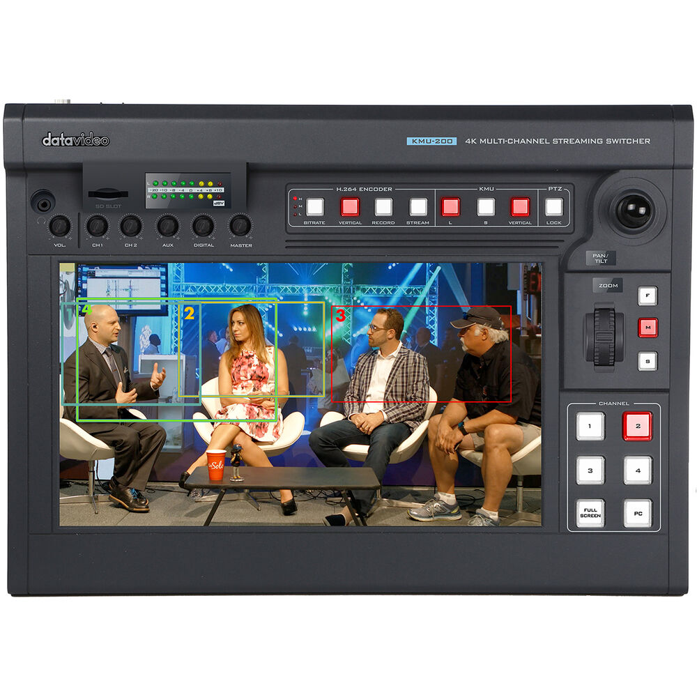 The KMU-200 lets you create four individual regions of interest from a single UHD 4K input video and switch between the regions of interest as if they were four separate inputs