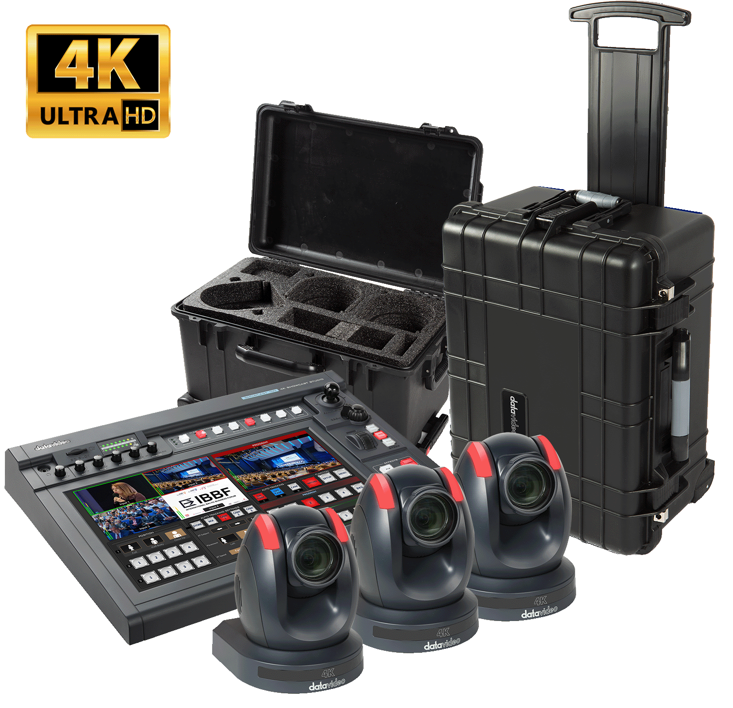 The Datavideo BDL-1610 is a powerful all-in-one production bundle that combines the versatile SHOWCAST 100 Switcher with three PTC-280 4K PTZ Cameras. Housed in durable HC-850 and HC-800 protective cases, this bundle provides a complete, portable production solution for live events, broadcasts, and productions on the go. Experience the future of 4K production with seamless control, crystal-clear visuals, and intuitive operation.