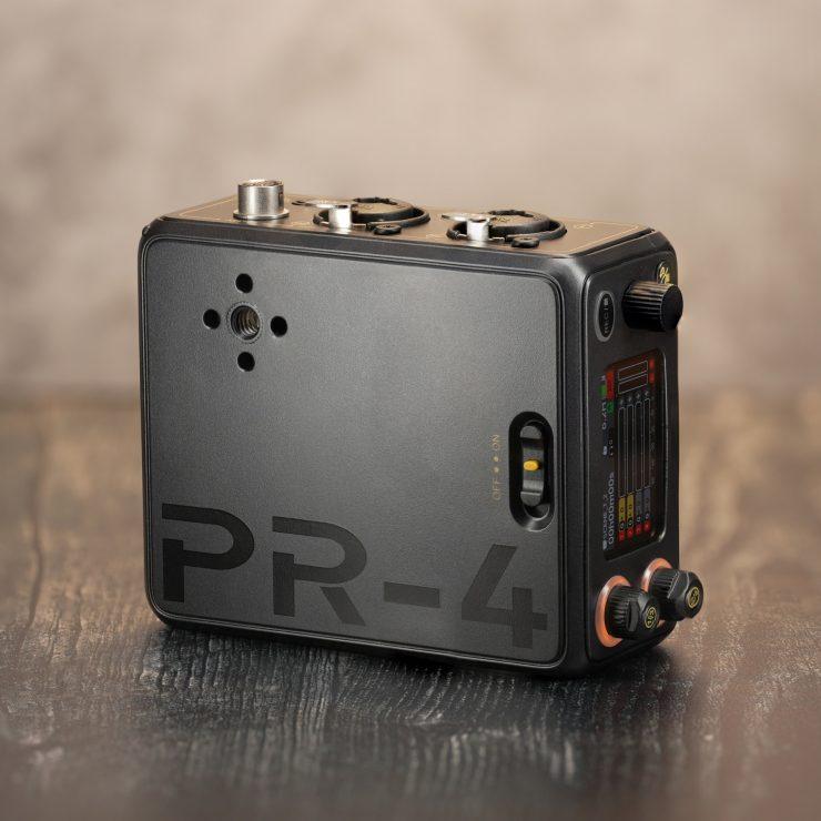 PR-4 Portable 4-Input 32-Bit Float Field Recorder, a compact recording solution that offers four microphone inputs and six-track recording in a small enough package to be mounted directly onto a camera and carried in a lightweight production bag.
