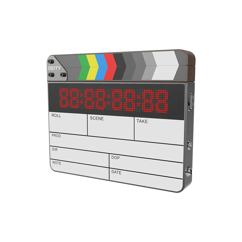 The Deity TC-SL1 is the world's first Bluetooth® enabled smart slate. Wirelessly sync the TC-SL1 from up to 250 feet away using its free phone app, Sidus Audio. You can also sync the TC-SL1 using your TC-1 timecode boxes. Featuring both 5-Pin and 1/4” TRS, the TC-SL1 will work with your existing timecode cables. And with the flick of a switch, the TC-SL1 can accommodate tail slating. The two NP-F550s can be hot-swapped between each other, and the USB-C port can support up to 30W charging. The wooden clapper is made from sustainably farmed Walnut lumber from the state of Tennessee.
