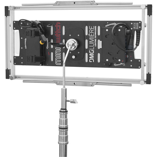 Resembling a frame, the aluminum Rabbit Ears for 1x Mini Switch and MINI MIX Panels from DMG Lumiere is a quick-attaching alternative to inconvenient speed rings for mounting SnapBag softboxes to these fixtures.