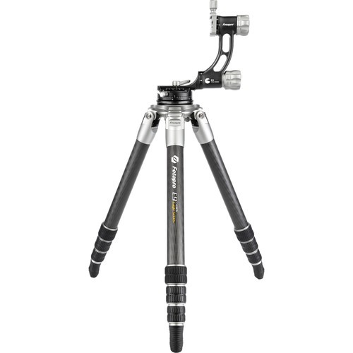 The E9 Eagle Series Tripod Kit from Fotopro is a 4-section carbon fiber support with twist locks that disengage with a quarter turn. Therefore, you are able to extend the legs from a folded length of 25.6" to a maximum height of 64". With its independent leg spread and three variable leg angles, you can lower the tripod to a minimum height of 6.3".