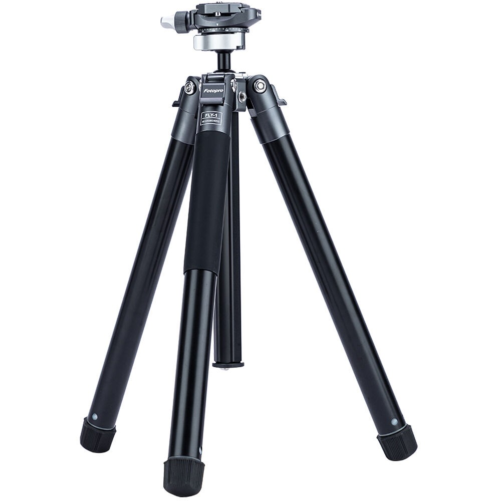 The FLY-1 Aluminum Travel Tripod with Arca-Type Ball Head from Fotopro is a compact and lightweight aluminum travel tripod designed for travel and location photography. It has a maximum height of 59.3" and can support cameras weighing up to 11 pounds, but weighs only 2.2 pounds. It folds down to a compact 14.8", easy to tuck into a backpack or carry-on luggage. The legs quickly extend and collapse with a simple twist. Each leg can be positioned independently, making it possible to level the tripod on uneven surfaces.