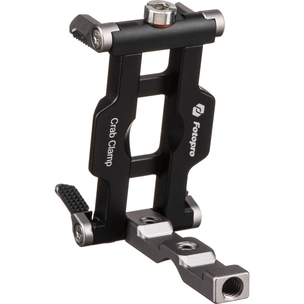 This Pincer Clamp Smartphone Stand/Tripod Mount from Fotopro can be used as a mini table tripod, a smartphone stand, or a tripod mount for your smartphone. The 1/4" screw hole can accommodate selfie sticks, monopods, or tripods. The pincer clamp can is engineered to hold your smartphone in either a vertical or horizontal orientation. The pincer clamp is precision CNC machined and features a hard anodic oxidation coating to help protect the metal surface and prolong its life. When not in use, it conveniently folds flat and can be stored in the included leather holster.
