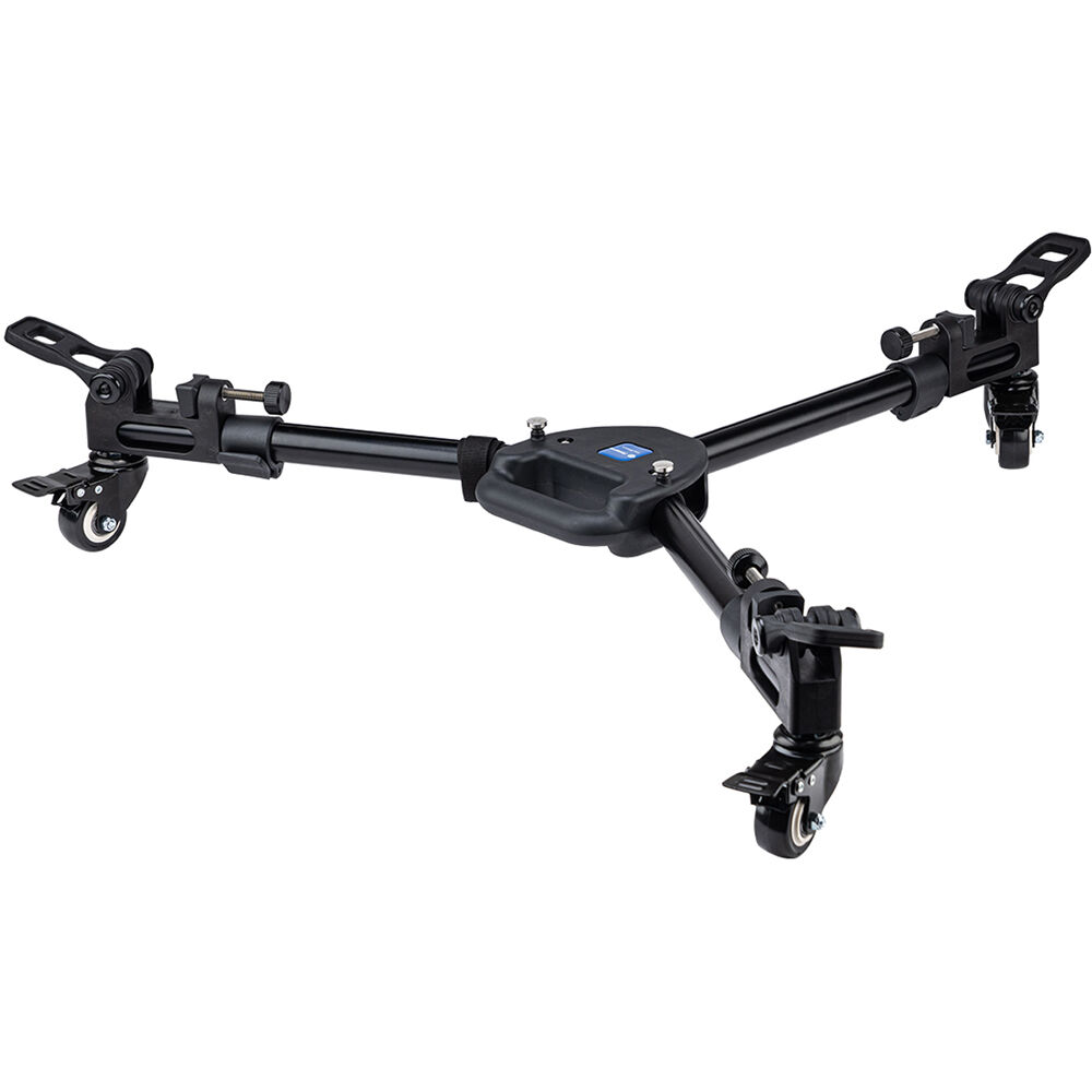 Mobilize your camera rig on any tripod with the Video Dolly Fire Wheels from Fotopro. This aluminum universal dolly system allows you to move most tripods with payloads up to 33 lb smoothly with ease along flat surfaces. The three sturdy 2" diameter casters can freely rotate a full 360°, and the flip-locking knob design makes it easier to quickly set up or to fold the unit down to 21". A form-fitted carrying case is included for easy transport and storage.