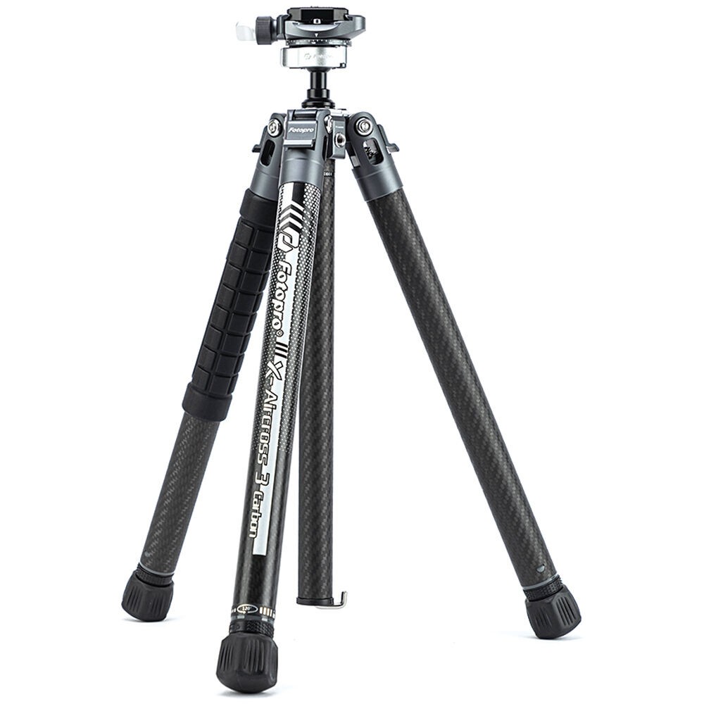 The X-Aircross 3 Carbon Lite Fiber Travel Tripod with FPH-32Q Ball Head from Fotopro is a compact and lightweight carbon fiber travel tripod designed for travel and location photography. It has a maximum height of 59.5" and can support cameras weighing up to 8.8 pounds, but weighs only 1.79 pounds. It folds down to a compact 15.7", easy to tuck into a backpack or carry-on luggage. The legs quickly extend and collapse with a simple twist. Each leg can be positioned independently and has three available locking positions, making it possible to level the tripod on uneven surfaces.