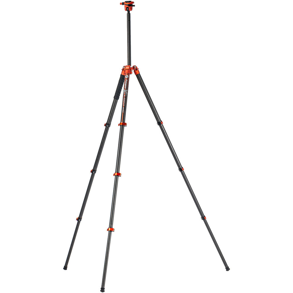 Stable and lightweight, this orange X-Airfly Max Carbon Fiber Travel Tripod from Fotopro features a robust 22 lb load capacity with a maximum working height of 65.4". Designed with a removable 2-section center column, the tripod also offers a minimum shooting height of 5.3", making it ideal for macro work. Easy to carry in a backpack or your carry-on luggage, this compact tripod folds down to 19.9" and weighs just 3 lb.