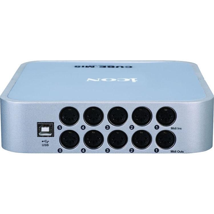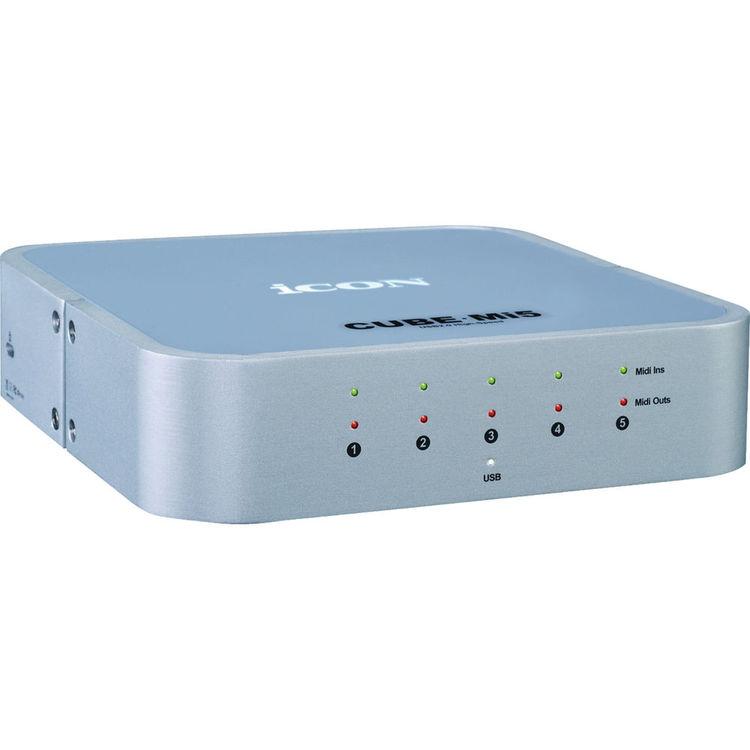 iCON Digital's CubeMi 5 MIDI Interface is a 5 in/5 out MIDI interface with 80 x 80 MIDI channels. Supports MultiPlat driver (Windows only). It features a high speed USB 2.0 connection, is plug and play for Mac and Windows platforms, has great MIDI timing, and is USB powered, so no external power supply is needed.