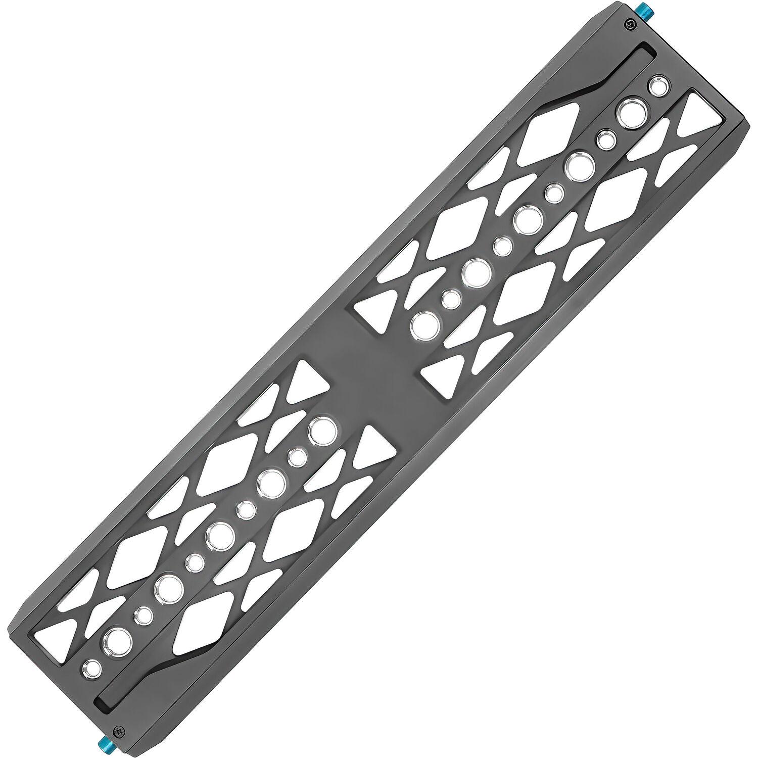 The 12" ARRI Lightweight Dovetail Plate from Kondor Blue is used with a separately available sliding bridge plate to balance your camera rig. This Space gray plate features stopper screws and safety buttons on each end to prevent the bridge plate from sliding off.