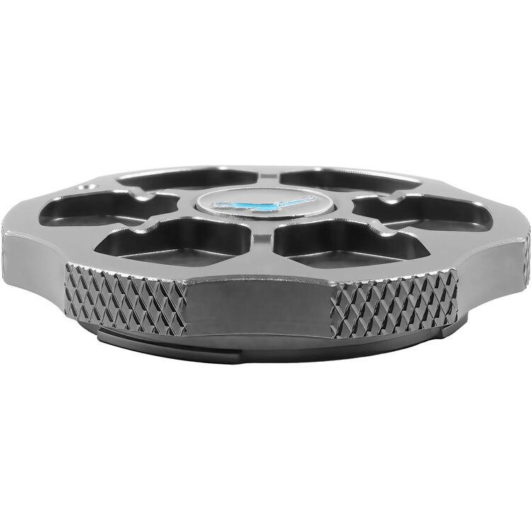 Protect your camera's mount and sensor with this Aluminum Body Cap for Nikon F-Mount Cameras, in space gray, from Kondor Blue. The engraved mounting indicators show you which way to turn the cap while holding it by its edge-gripping ridges. The cap locks into place in the camera's mount, and the anodized finish protects the cap from scratches and scuffs.