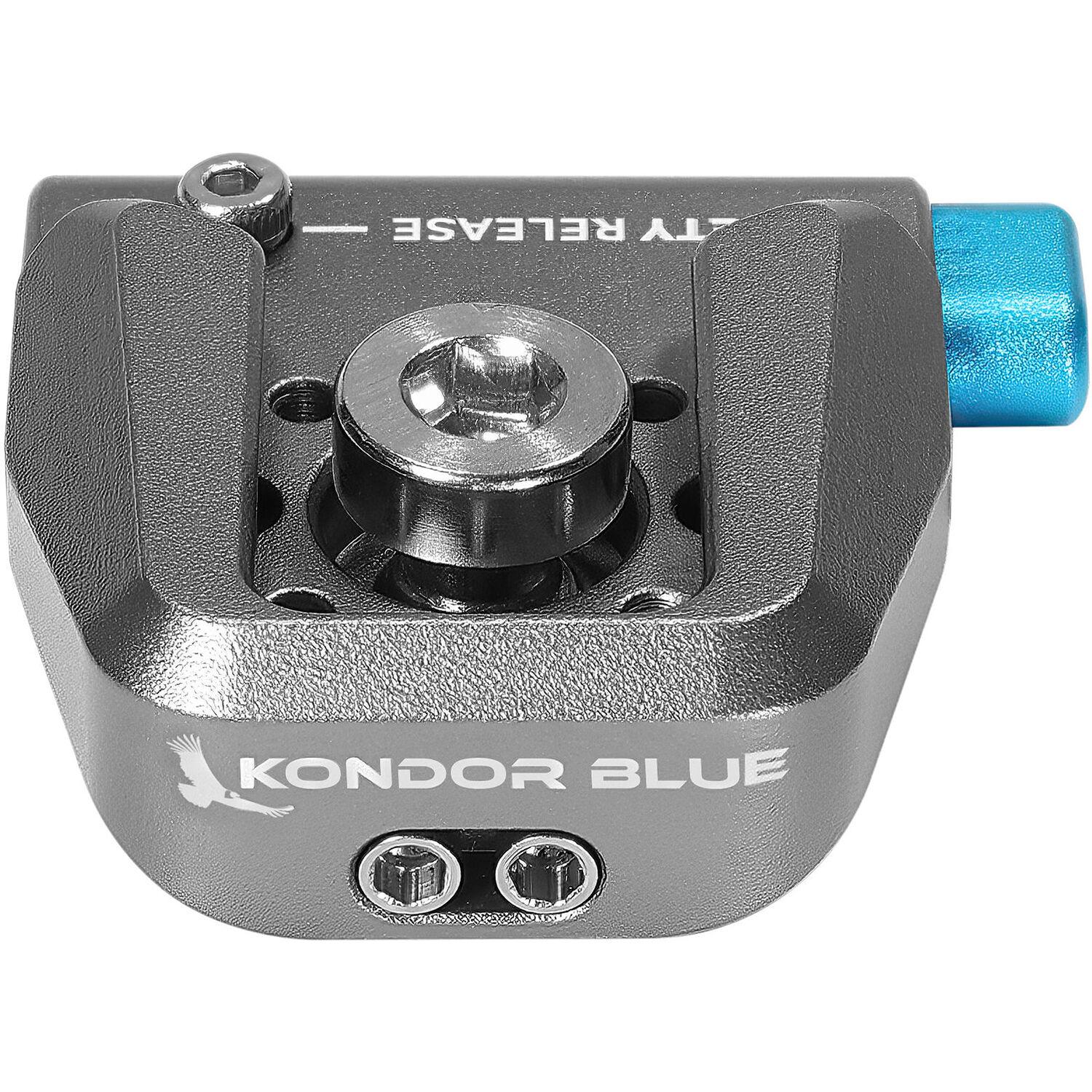 Add a cold shoe for mounting accessories to your camera rig with this Kondor Blue Anti-Twist Cold Shoe Plate. It mounts on your camera using the included 1/4"-20 screw, and it comes with removable 3mm anti-twist divots for use with anti-twist mounts. A rubber O-ring helps prevent damage from metal to metal contact. A forward stop keeps your accessory from sliding through, and a spring-loaded safety keeps your accessory securely attached to the cold shoe.