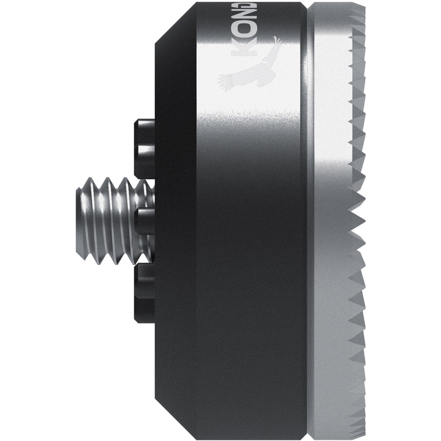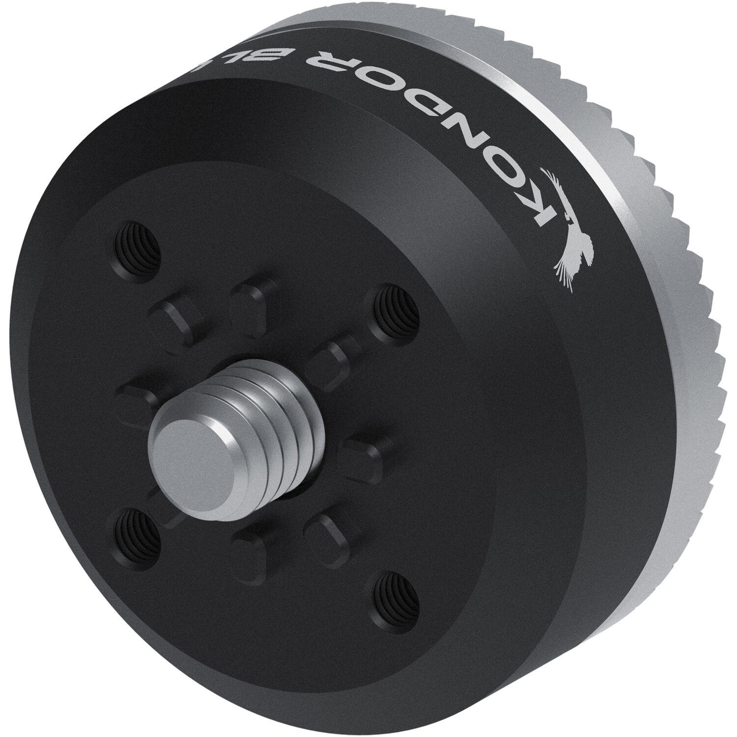 This raven black ARRI-Type Rosette to Sony 8T Mount from Kondor Blue provides a straightforward and secure method for converting a 60-tooth ARRI-type rosette into a Sony 8T mount. The adapter features a 1/4"-20 mounting screw securely held in place by the rosette, which can be mounted on a Sony cinema camera such as the FX6 through a 6mm mounting hole using the included Allen key.