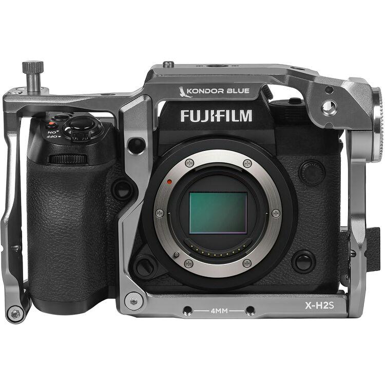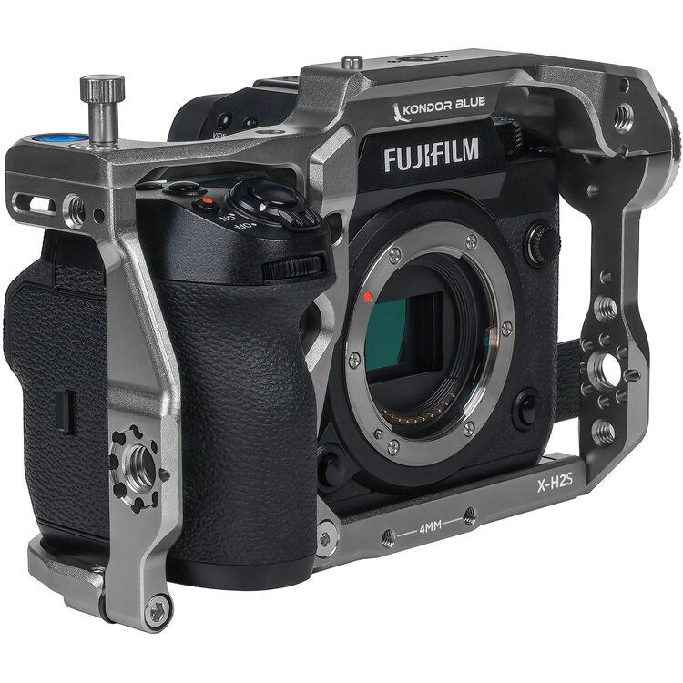 This space gray Cage from Kondor Blue is specifically designed to work with the FUJIFILM X-H2S. Anchored on the pillars of speed, strength, and sleekness, the cage harnesses Kondor Blue’s innovative Hatch System, providing a distinctive method to mount your camera cage with minimal bolts while ensuring steadfast stability. The incorporation of a mid-rail and eyelet inserts furnishes unparalleled structural integrity to the camera, requiring only four bolts for full assembly or removal of the cage.