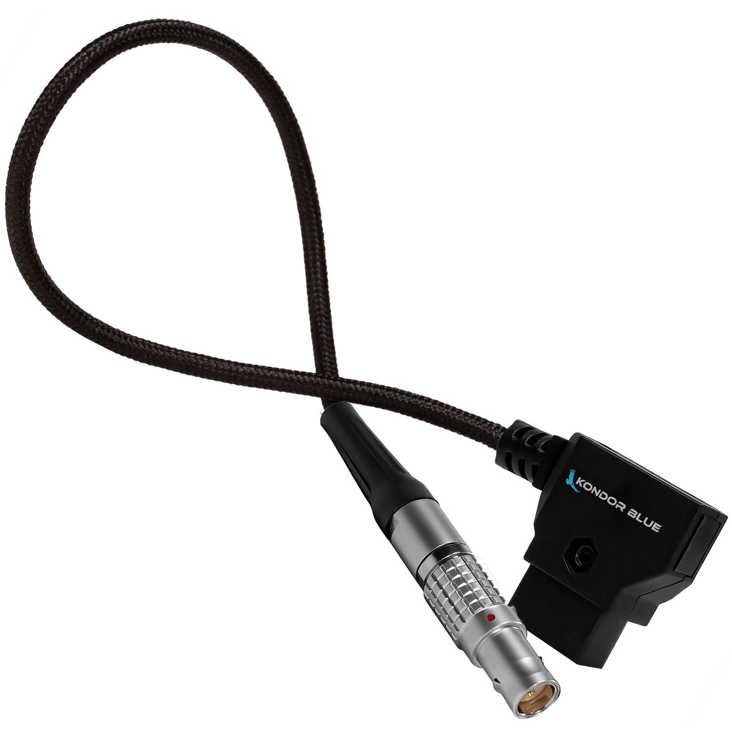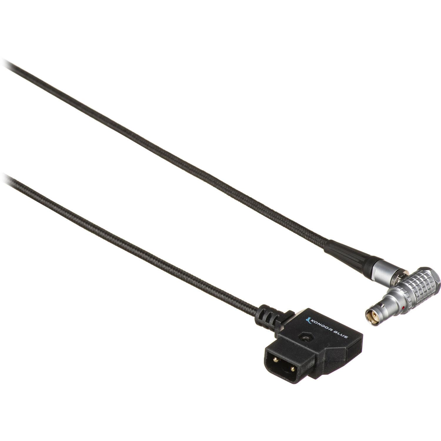Connect a V-mount or Gold mount battery to your RED KOMODO camera with the D-Tap to 2-Pin LEMO Braided Cable from Kondor Blue. One end of the cable features a right-angle D-Tap connector, while the other has a 2-pin LEMO connector compatible with your RED KOMODO. The durable braided cable measures 10" in total length.
