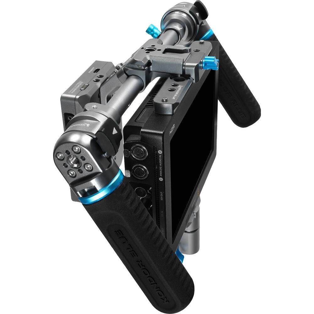 Move freely around your production set and effectively monitor all the action your camera is seeing with this space gray Director's Monitor Pro Kit MKII from Kondor Blue. The lightweight modular kit comes with a monitor bracket that can be mounted on the top or bottom of the monitor and allows you to mount the included V-mount battery plate. This complete monitor rig solution also includes a monitor cage NATO rail, an 8" 15mm rod, two rod-to-rosette adapters, a NATO-to-spigot clamp adapter, and quick release rosette handgrips. Two Allen keys (3 and 4mm) are magnetically integrated into the kit.