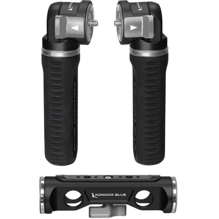 This raven black Pro Pivot Rosette Grips & Dual-Rod Clamp Bundle from Kondor Blue has been fully redesigned to favor left and right compatibility. Designed for use with various rosette-compatible accessories, the integrated 60-tooth ARRI-style rosette features an M6 bolt for broad compatibility with any standard grip or arm. The lightweight 3 oz pivot module boasts 30 adjustment positions with an improved mechanism that employs two stainless steel pins for better strength and overall mounting safety. The quick release mechanism offers minimal play, with the ergonomic rubber grip providing a comfortable handle.