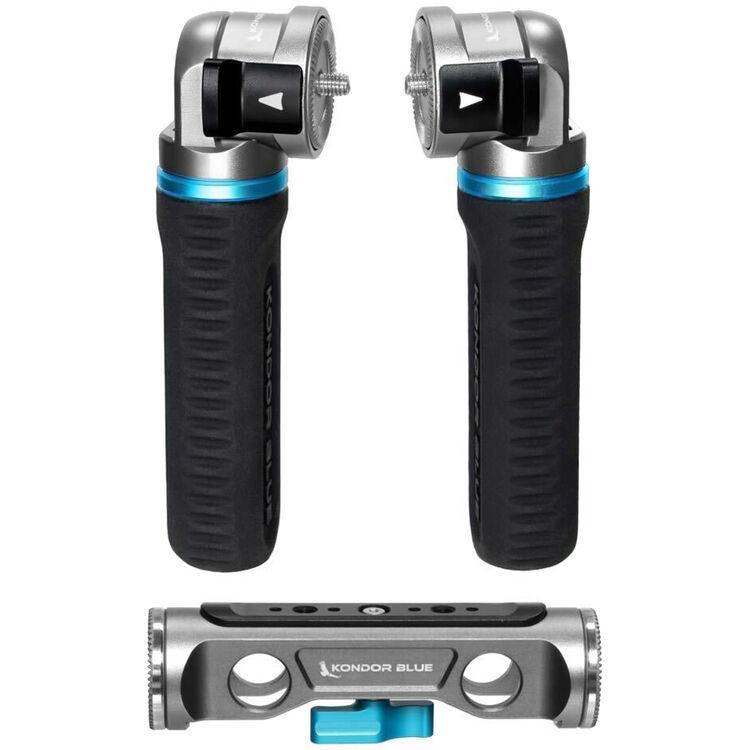 This space gray Pro Pivot Rosette Grips & Dual-Rod Clamp Bundle from Kondor Blue has been fully redesigned to favor left and right compatibility. Designed for use with various rosette-compatible accessories, the integrated 60-tooth ARRI-style rosette features an M6 bolt for broad compatibility with any standard grip or arm. The lightweight 3 oz pivot module boasts 30 adjustment positions with an improved mechanism that employs two stainless steel pins for better strength and overall mounting safety. The quick release mechanism offers minimal play, with the ergonomic rubber grip providing a comfortable handle.