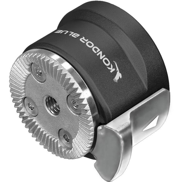 This raven black Pro Pivot Rosette Module from Kondor Blue has been fully redesigned to favor left and right compatibility by simply rotating it 180°. Designed for use with various rosette-compatible accessories, the 60-tooth ARRI-style rosette features an integrated M6 bolt for broad compatibility with any standard grip or arm. The lightweight 3 oz module boasts 30 adjustment positions with an improved mechanism that employs two stainless steel pins for better strength and overall mounting safety.