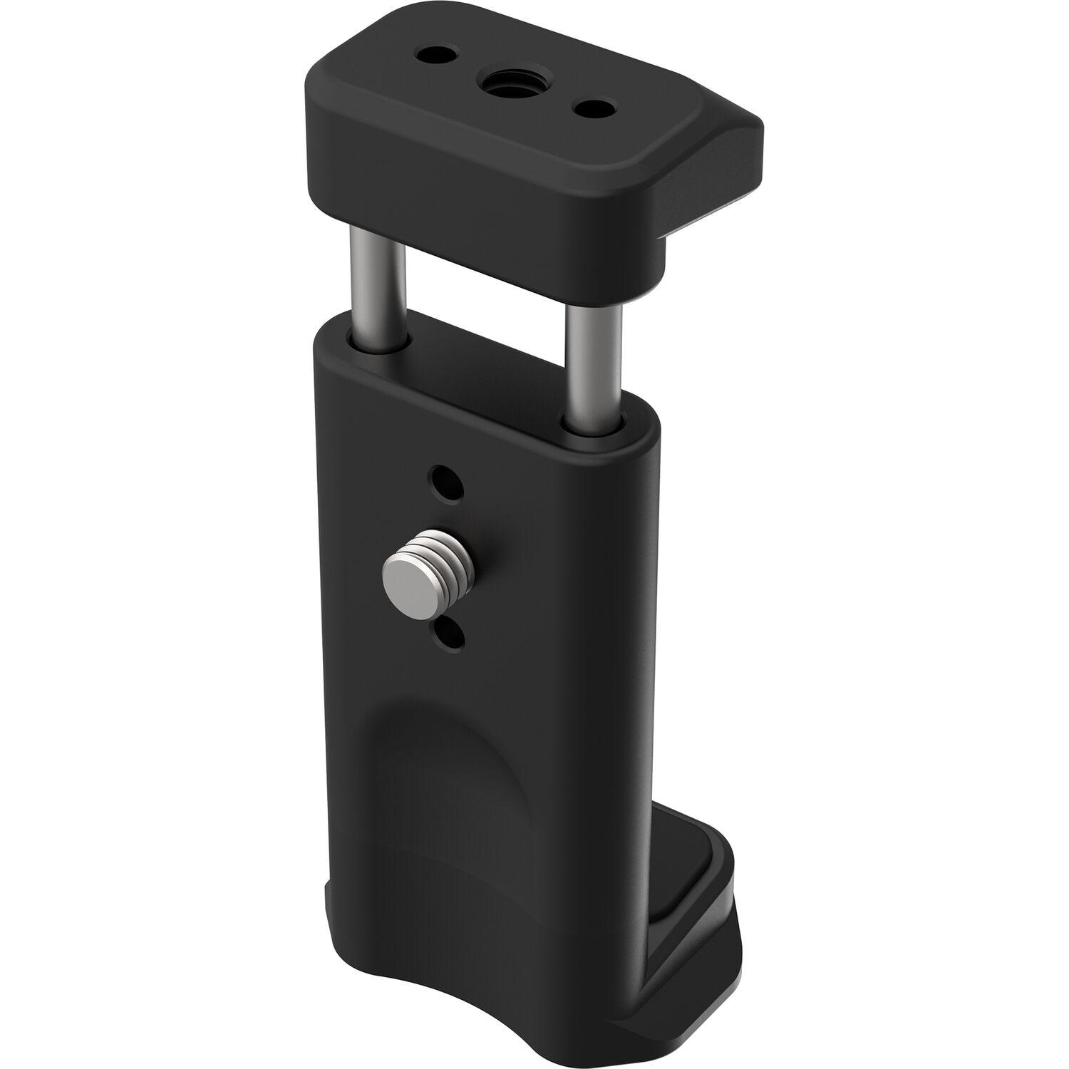 Designed for social content creators looking to take their mobile filmmaking to the next level, the Stalman Standard Clamp from Kondor Blue fits devices 2.4 to 3.3" wide and cases up to 0.1" thick. It attaches to your tripod using a 1/4"-20 female thread, or take advantage of the integrated Arca plate for compatibility with DJI gimbals. Attach compatible accessories, such as lights or microphones, using two additional 1/4"-20 female threads and the included 1/4"-20 male bolt adapter, which screws into one of the 1/4"-20 female threads. Thanks to cutout clearance, this clamp ensures that your phone's cameras will not be blocked.