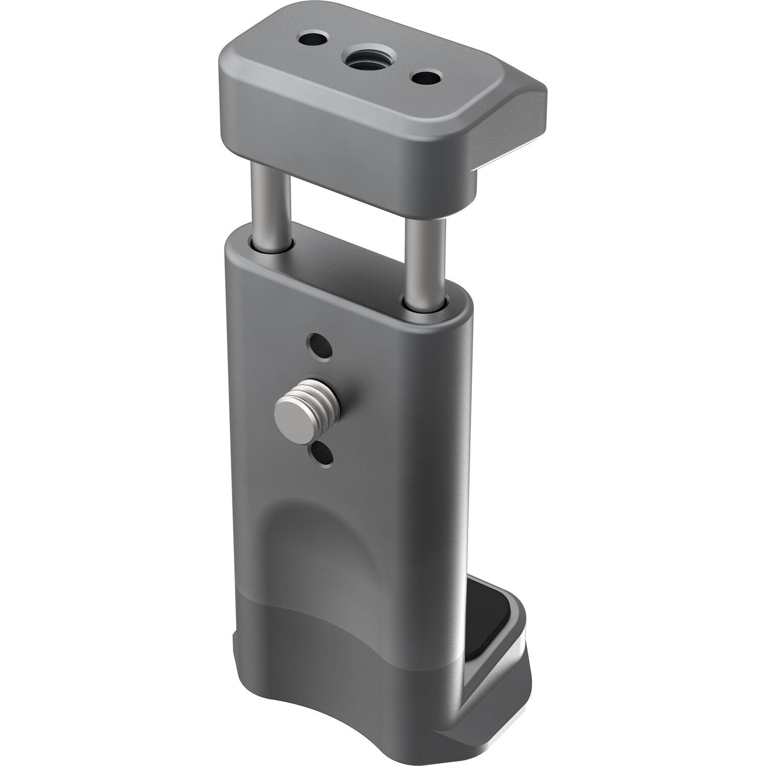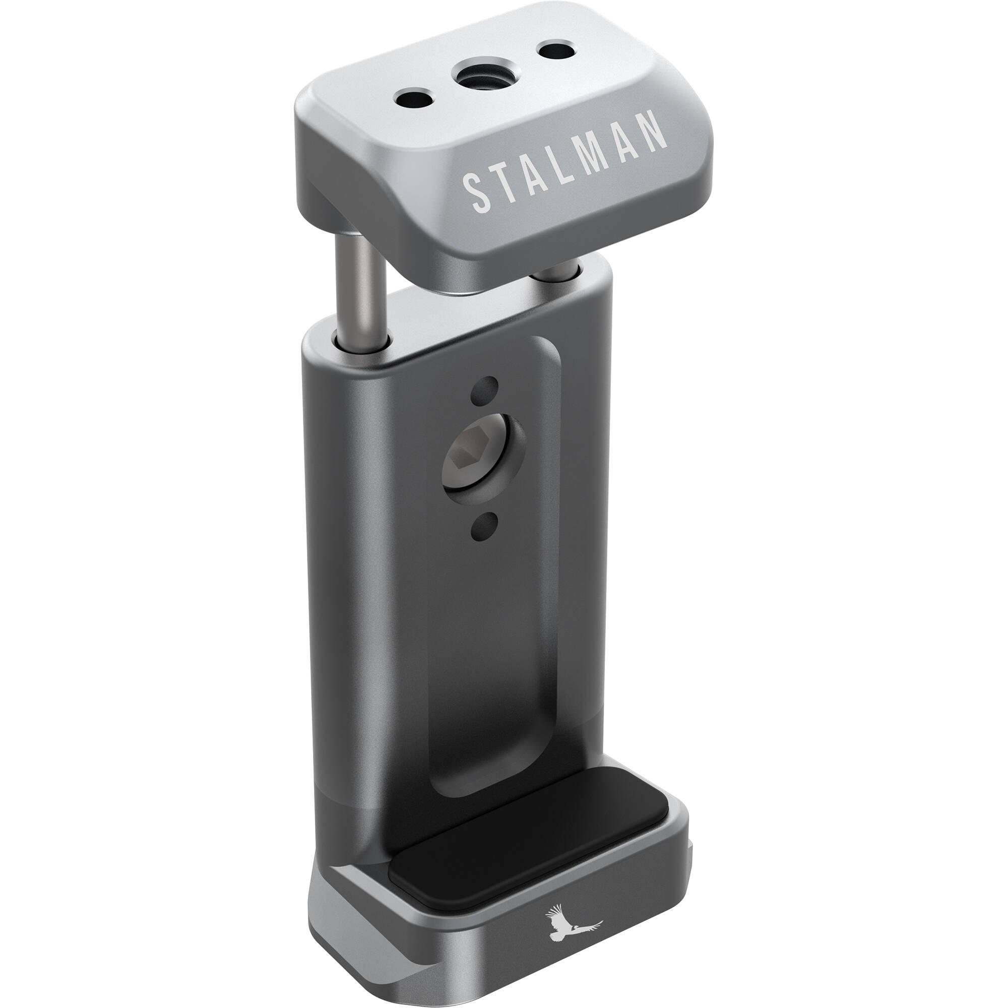 Designed for social content creators looking to take their mobile filmmaking to the next level, the Stalman Standard Clamp from Kondor Blue fits devices 2.4 to 3.3" wide and cases up to 0.1" thick. It attaches to your tripod using a 1/4"-20 female thread, or take advantage of the integrated Arca plate for compatibility with DJI gimbals. Attach compatible accessories, such as lights or microphones, using two additional 1/4"-20 female threads and the included 1/4"-20 male bolt adapter, which screws into one of the 1/4"-20 female threads. Thanks to cutout clearance, this clamp ensures that your phone's cameras will not be blocked.