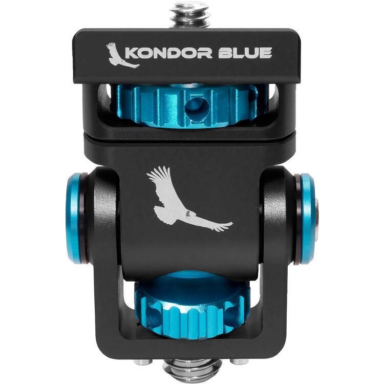 The adjustable Swivel and Tilt Monitor Mount with ARRI-Style Mount in raven black from Kondor Blue attaches to your camera rig via a 3/8"-16 ARRI-style anti-twist mount with locating pins. Supporting a 5 or 7" onboard monitor weighing up to 2.6 lb, this mount swivels 360° and tilts 170°, enabling you to position your monitor at the best viewing angle. It also features protective rubber padding on top and includes an Allen wrench for tightening the mount.