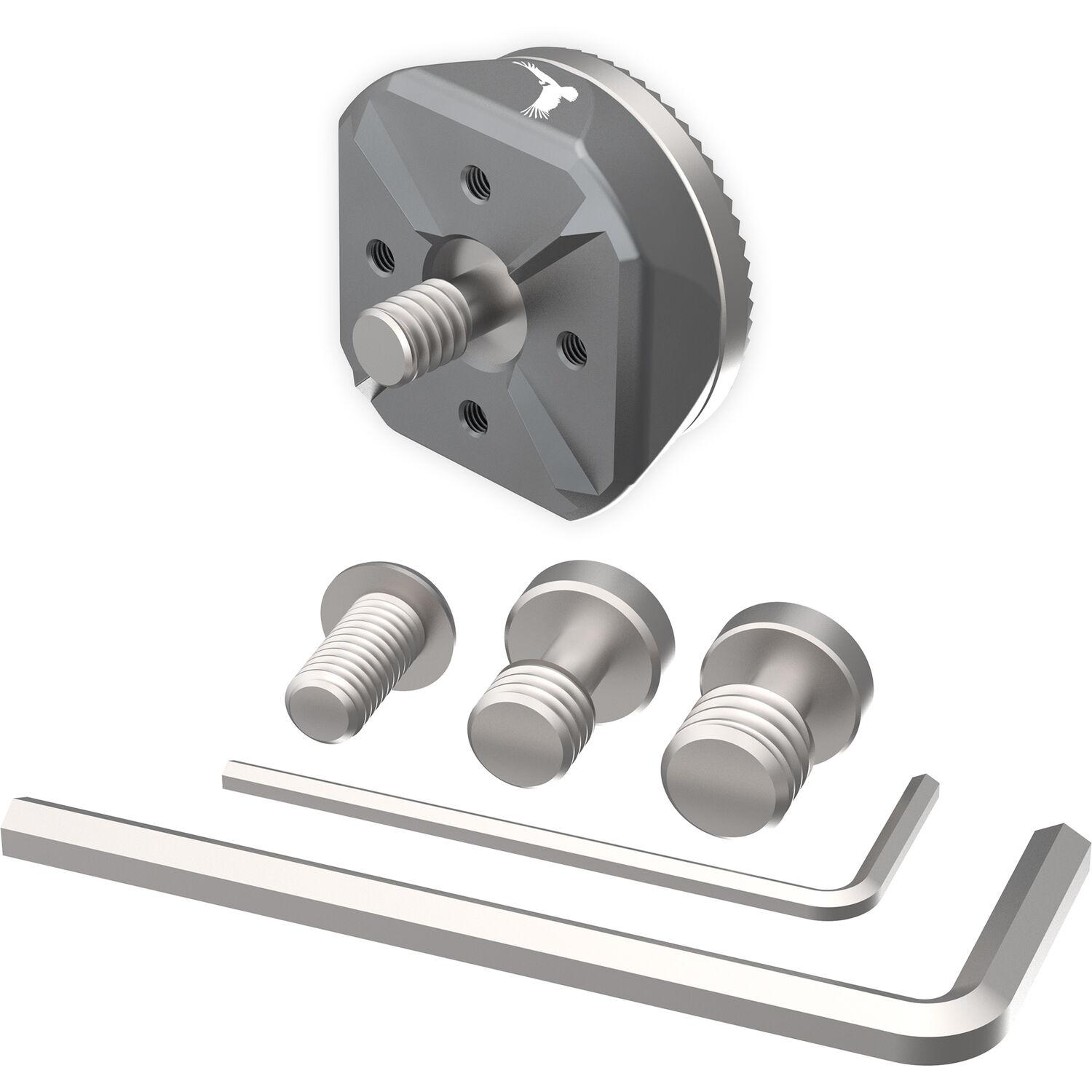 This Tripod Rosette Adapter from KONDOR BLUE has been designed and tested to work with virtually any tripod rosette. It includes the most common mounting bolt sizes for tripod rosette adapters: 1/4"-20, 3/8"-16, M6, and M8. Once you've matched the bolt to your setup, install it into the camera tripod mount adapter, then secure the ARRI-style rosette using the included 4x M3 x 8mm flat-head bolts. The adapter features a captive bolt design.