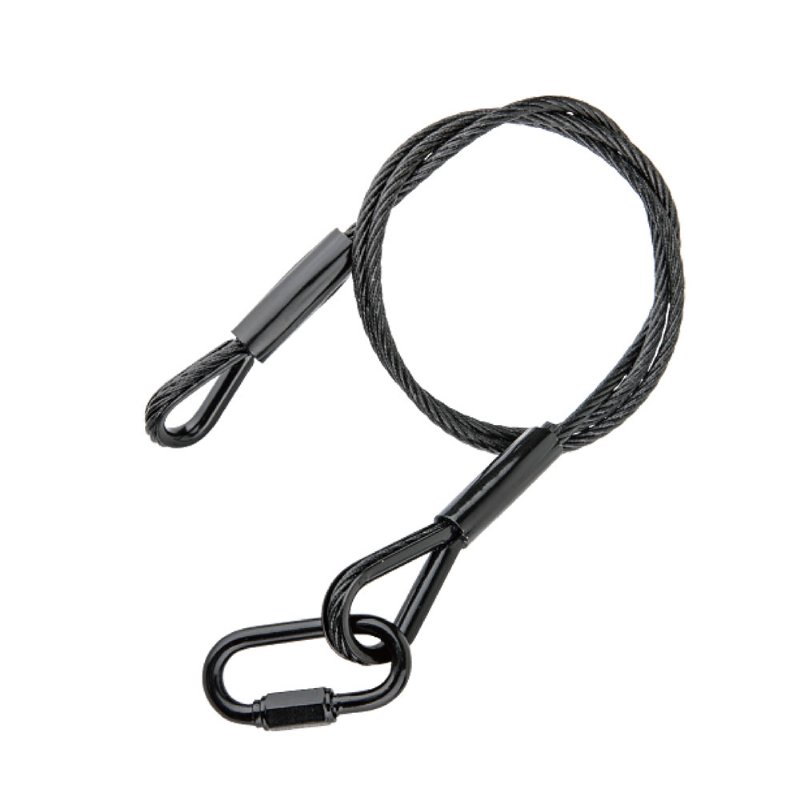 Safety cables (SW-03-B) are recommended when supporting lights cameras or accessories from the ceiling in case they unexpectedly come loose from where they are mounted. This is a heavy-duty steel safety cable. It is 40" (100cm) long and has a diameter of 0.19" (5mm) with a load rating of 110lbs (50Kg). It comes equipped with a locking "D" ring closure.