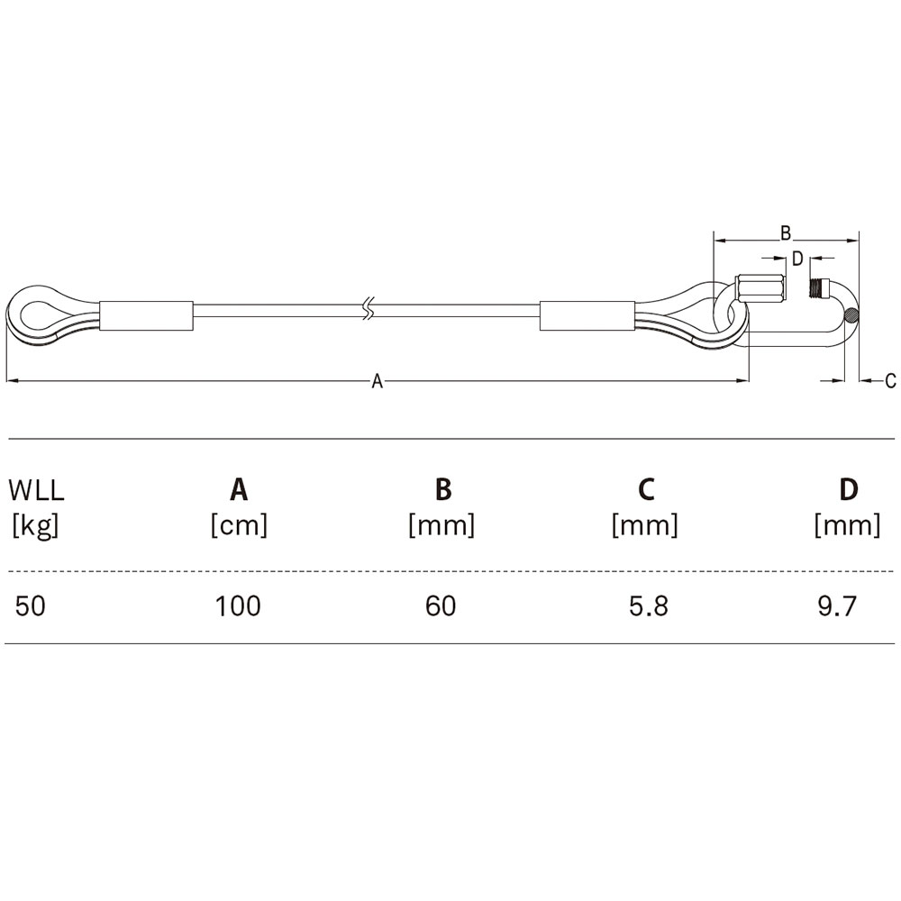 - Wire rope diameter 4.8mm, length 100cm (40")