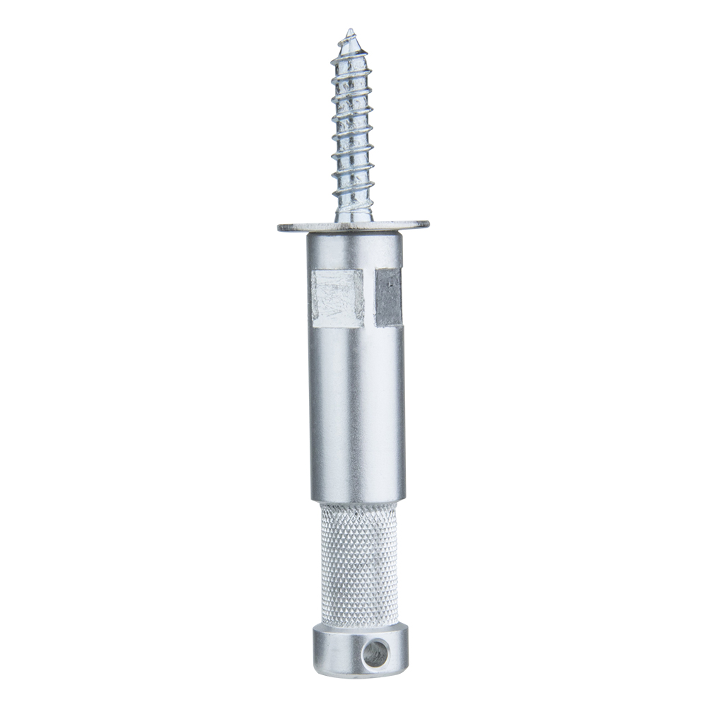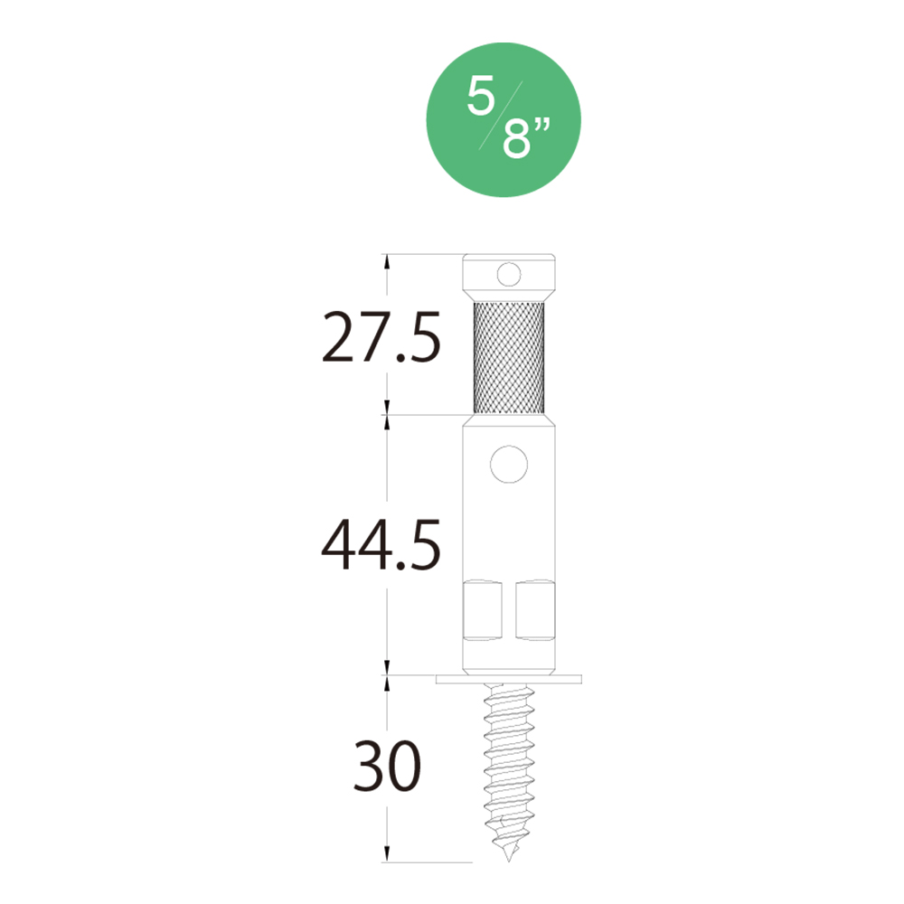 Made of aluminum 5/8” (16mm) baby pin with a m8 wood screw that allows you permanently or temporarily mount directly into a wood surface. Feature 4 flat surfaces on the baby pin that makes it easy to tighten or loosen the pin with tool.
