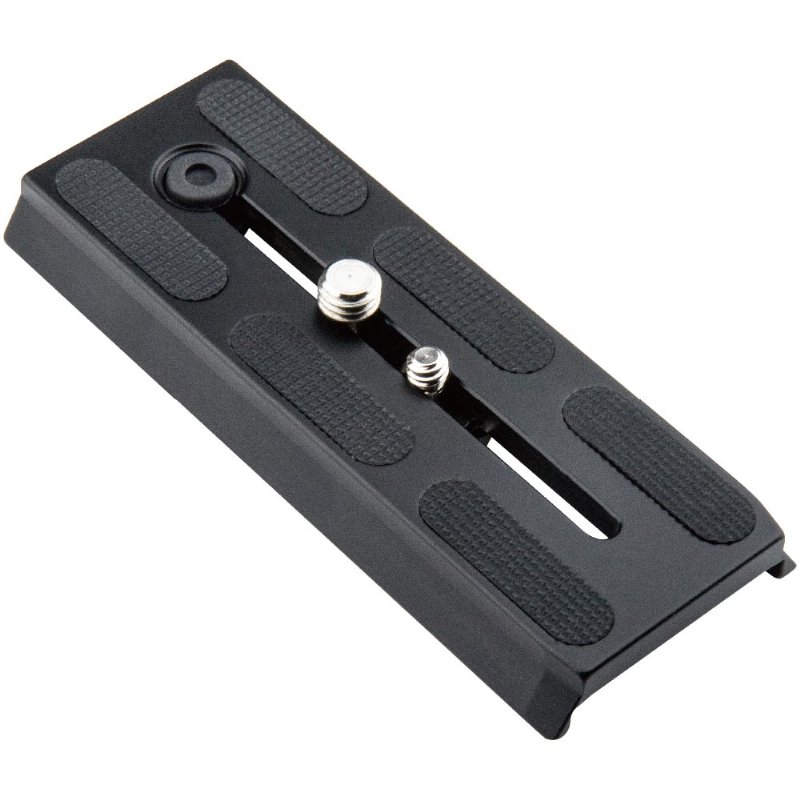 3.54”(9cm) long quick release plate is an aluminum camera plate which is compatible with manfrotto 501pl systems. The plate is equipped with 1/4”-20, 3/8”-16 camera screws and a little slotted catch that prevents the plate from falling off.