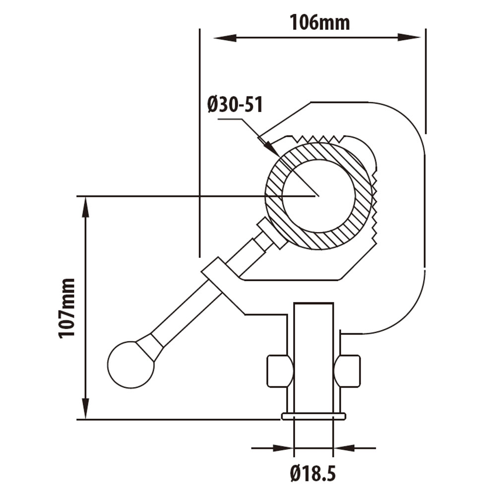KUPO Aluminum Die-Cast C-Type Hook (C-05) is made of high-strength aluminum alloy die-casting, which is very sturdy and durable. This hook can hold up to 40kg and weighs only 0.45kg, suitable for pipe diameters of 30~51mm. It is equipped with a 17mm female interface and a 3/8"-16 bolt for easy installation of lighting equipment. The Y-shaped knob is convenient for fixing and adjusting the lighting angle, and the top of the fixing screw has a rotating pad to provide better protection for the pipe and prevent damage. This hook is especially suitable for use in studios, theaters, photography studios and other lighting applications.
