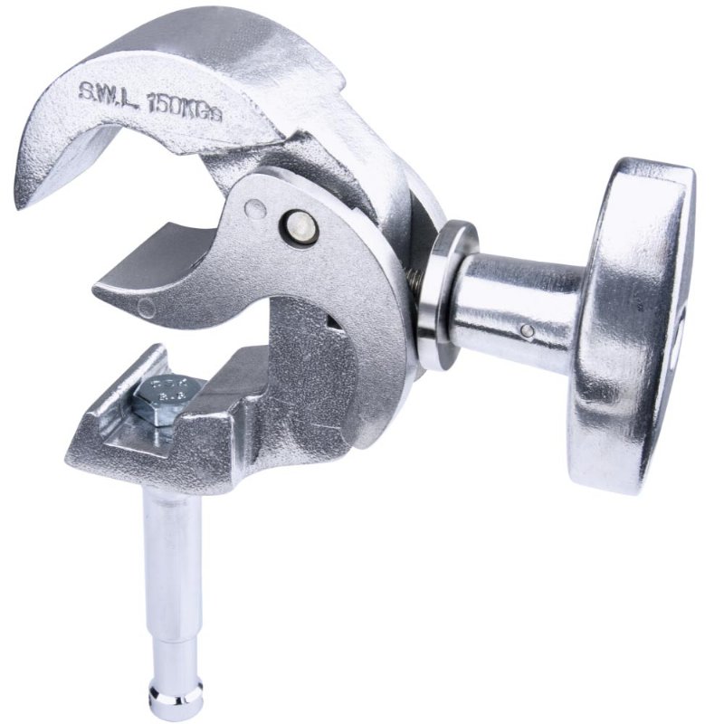 KUPO Arch Coupler W/28mm Spigot is a lightweight and low profile professional coupler, constructed from high tensile aluminum and steel alloy. It has been developed for installations where load capacities of up to 100kg (220lbs) are required. The KUPO professional couplers combine strength and durability with a high degree of safety. This type is designed to fit tubes with diameters between 38mm-51mm (1.5"-2.0"). It comes with 16mm stud and with a sliver finish.