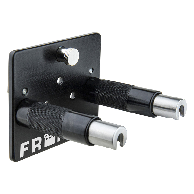 An aluminum plate witha black anodized finish, the Kupo assistant's front box mount is built for easily mounting the Kupo front box to a fluid head. Simply slide the ends of the mount’s two posts onto the head’s front box mounting screws, the n turn the black aluminum sleeves clockwise until it is securely locked in place. The fluid head box mount also features a unique spring locking pin that ensures the front box remains securely in place.