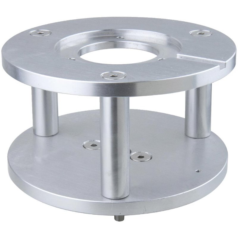 3” high mitchell camera riser which is assembled by mitchell female on top, mitchell male on bottom and three solid aluminum rods measuring 20mm in diameter
