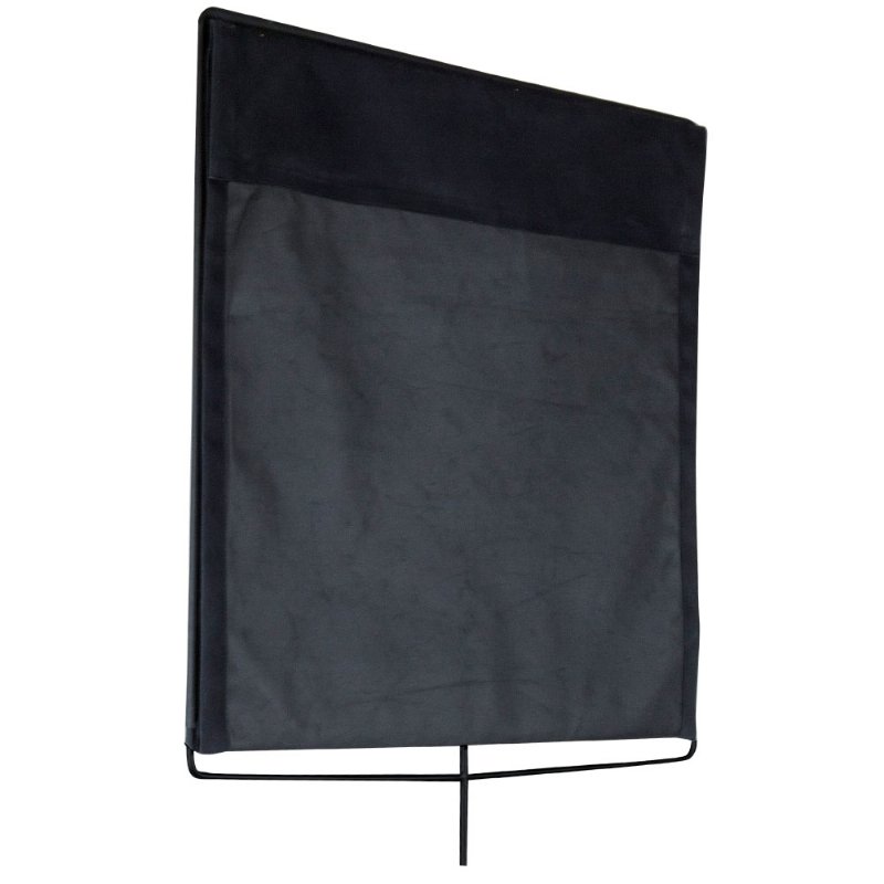 Well made opaque fabric with a rigid frame, this 36”(90cm) X 36”(90cm) top hinge floppy opens to 36”(90cm)X 72”(180cm) is very convenient for controlling light as they double in size by detaching the velcro. Works well as a courtesy shade for the camera or monitor outdoors or to block light from a doorway with no door or to control light on talent in front of green screen lighting.
