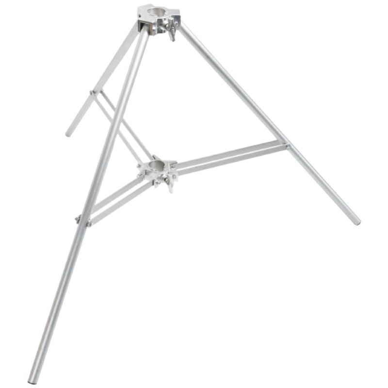 The Kupole base is designed to a convert a Kupole to a conventional stand whenever the ceiling is higher than 12' (3.6m) or a free-stand ing background is needed. The center base accepts 45mm diameter tubes. Leg diameter: 22mm witha 49.6" (126cm) footprint. Just remove the bottom rubber cover, slide on the tripod base the n replace the cover.