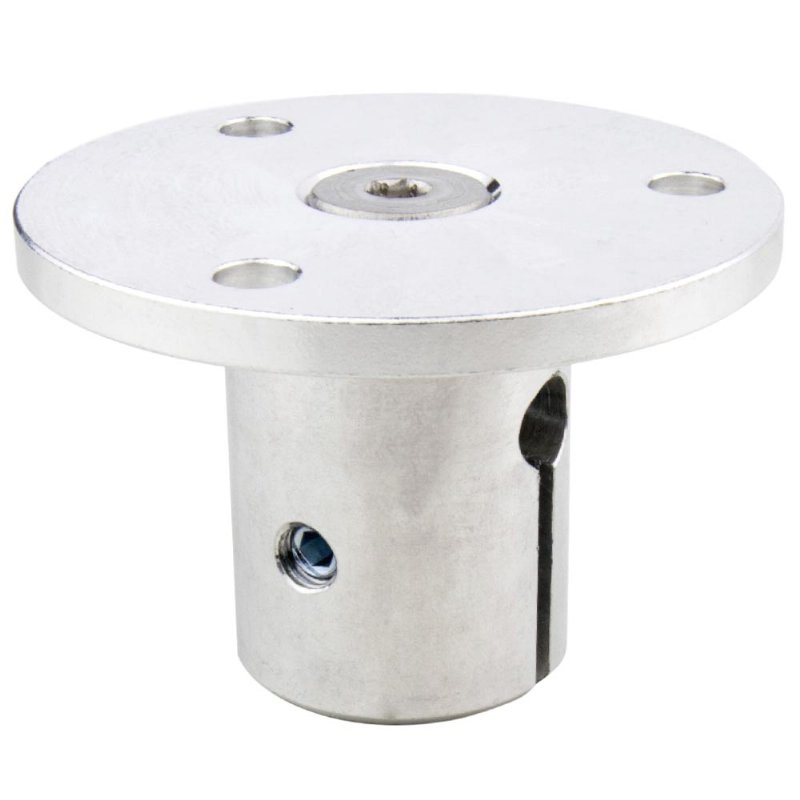 Aluminum made mounting adapters which are designed for ceiling mounted, bolted to the floor, or used as a complete floor-to ceiling installation. The round plate is measured 8cm in diameter comes with 3 through holes allows to be permanent mounted on ceiling or floor with Kupole.