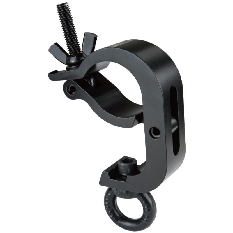 KUPO mighty handcuff with eye ring coupler (KCP-883B) is made of high-strength 6061-T6 extruded aluminum alloy, ensuring the greatest strong and durability. Thanks to a triggering mechanical design, this clamp is made to help rig heavy luminaries quickly and effortlessly. Load capacity 200kg (440.9lbs) and suitable for tube diameter 48-60mm (1.89"~2.36"). It is equipped with a M12 eye ring for the convenience of equipment suspension. Finish in black.