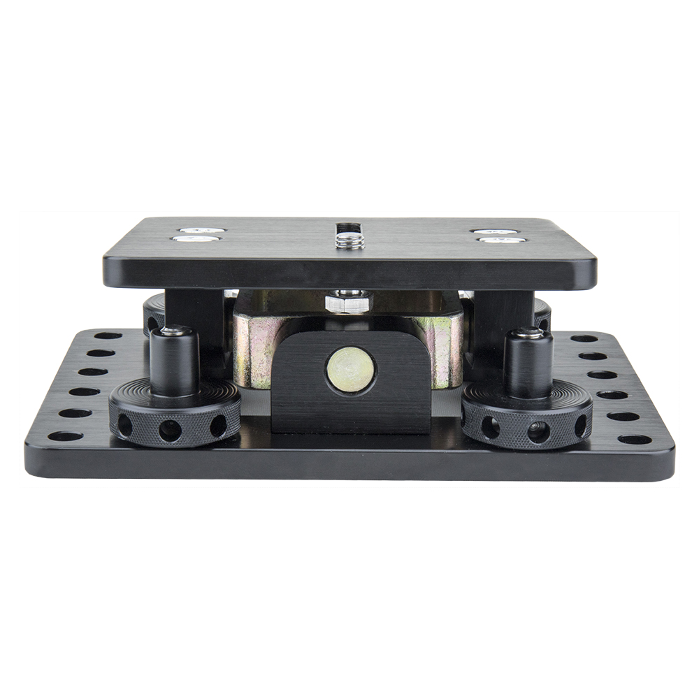 Machining 6061 aluminum with superior black anodized finish, Kupo mini 4-way leveling head designed for easily mounting the camera to the plate with the 3/8” slot. Features the 4-way leveler which is a balancing tool allows you to easily adjust tilt and horizontal position of camera. Also those through holes on the knob can be tighten with tool to help ensure stability once the right position is reached.