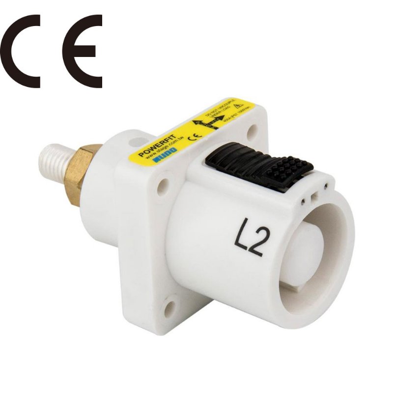 PowerFit connectors are well fabricated and compatible with major brands of single-pole power connector. The invented patent key releasing pin, particularly embedded on each line source and panel source, delivers great safety and convenience without additional tool while uncoupling. PowerFit is made in high standards. Full series employ high impact and temperature resistance thermoplastic, with flame retardant compound. Ergonomic rubber hand grip on each line connector provides the great comfort to the utility. The M40 cable gland comes standard and while connectors mated, it becomes IP67 rated. Unsurpassed pushing button design makes the handling of coupling and uncoupling easier. Respective phase and line information is clearly marked on the connectors for easy identification. The contact is made of brass with silver plated, providing excellent conductivity. Cotter pin is made of POM featuring great insulation, high stiffness, low friction and absorbent.